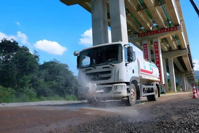 洒水车在施工便道上穿梭